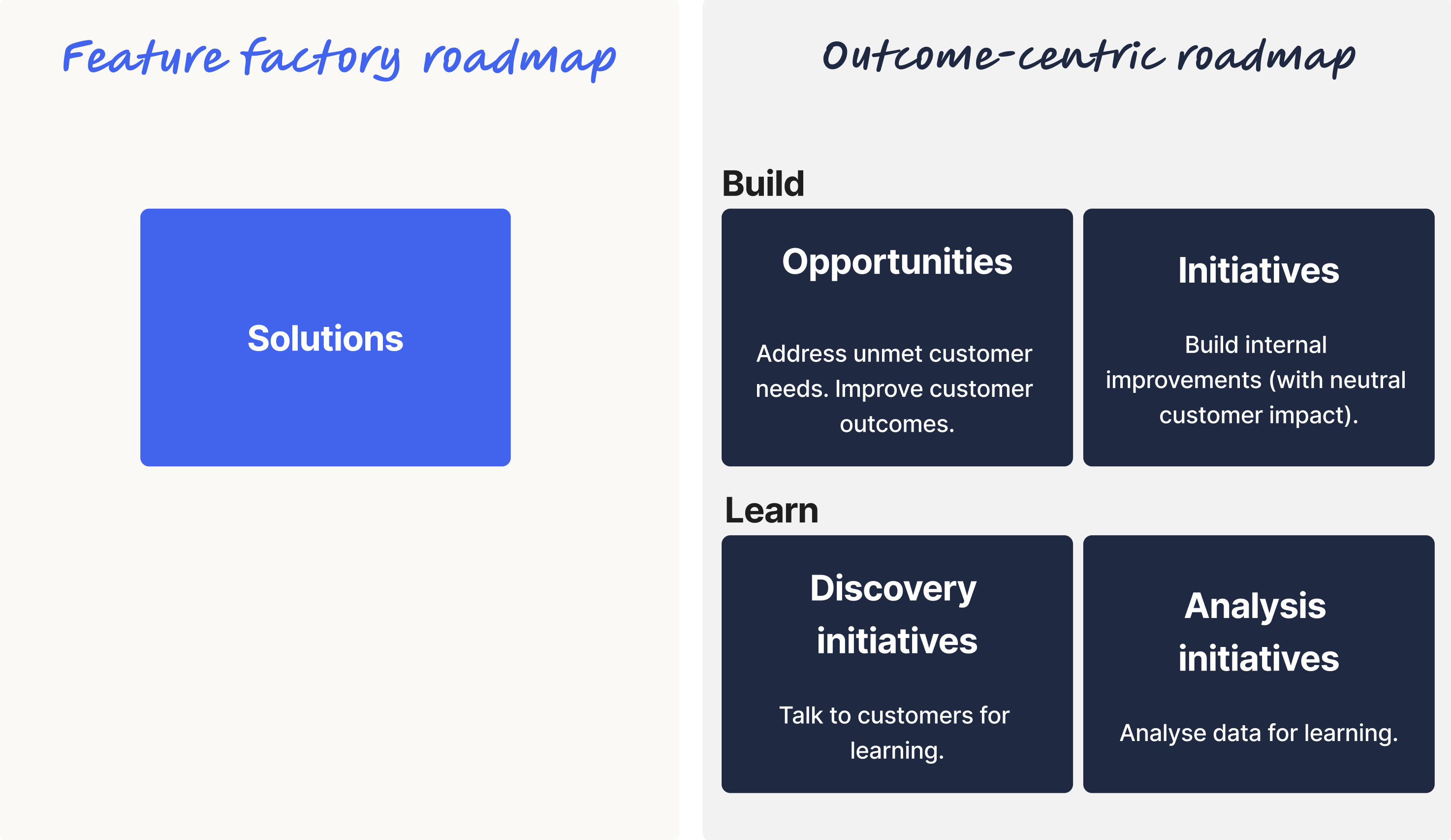 The difference between feature factory and outcome centric roadmaps